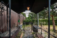 Участок 30 соток. На участке: газон, пруд, крытое барбекю с казаном, грилем и мангалом.