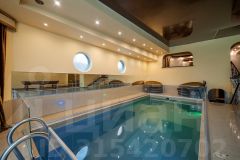 1 этаж: прихожая, холл, кухня, столовая, гостиная 1, с/у, гостиная 2 с бассейном и выходом на участок, спальня, котельная;