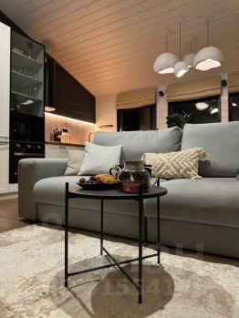 Светлая гостиная комната с раскладным диваном 160*200, совмещенная с кухней и обеденной зоной.