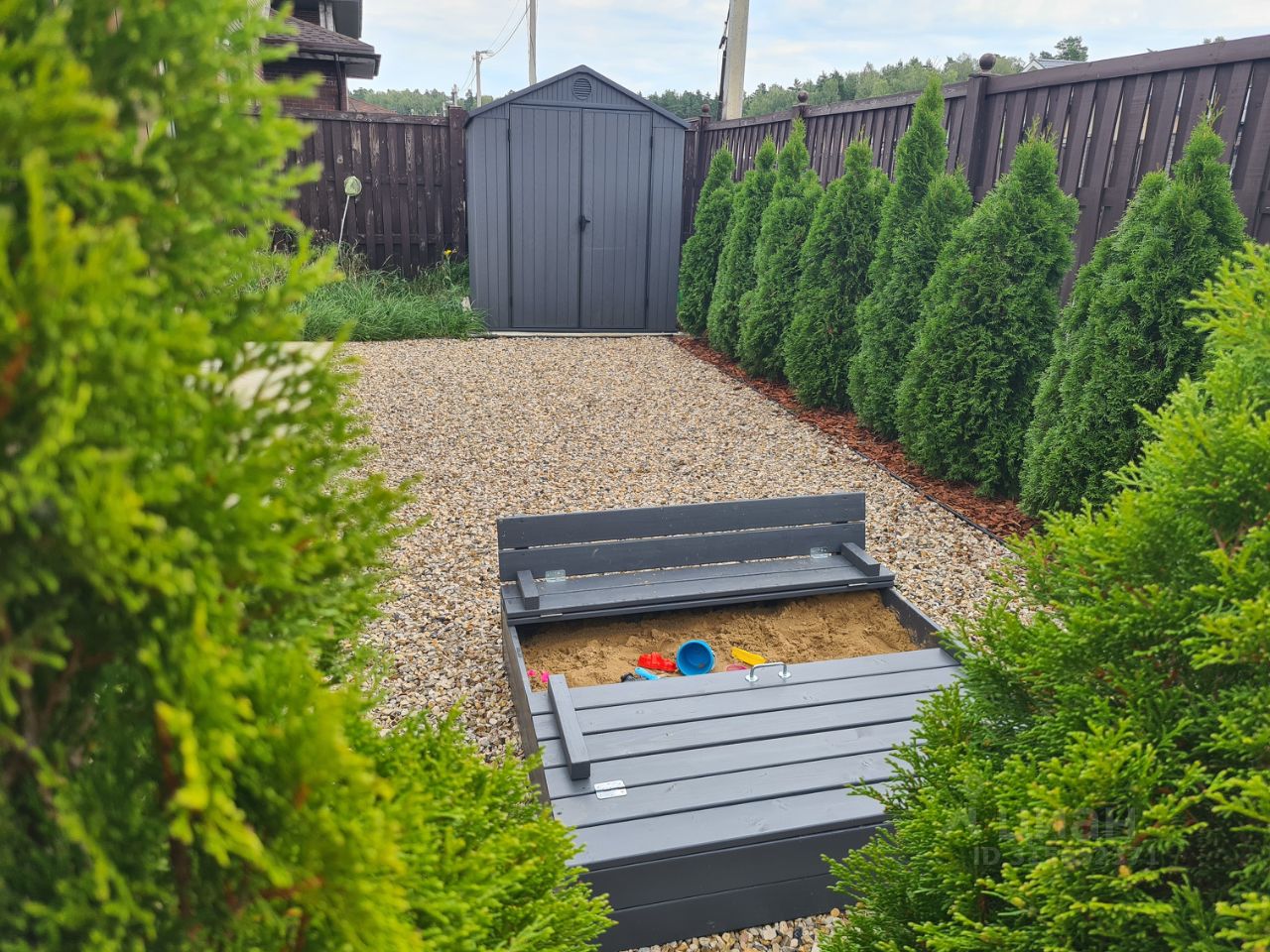 На участке: баня на дровах, батут, детская песочница, качели, спортивные кольца, хозблок для хранения инвентаря, костровая зона, мангал.