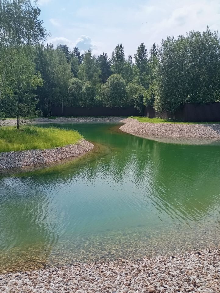 Озеро с зоной отдыха, лежаками с шикарным пляжем и белоснежным песочным берегом.