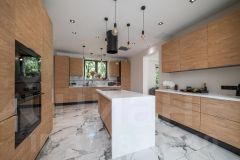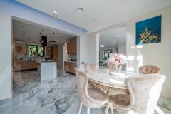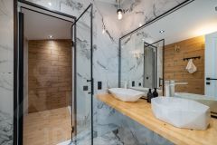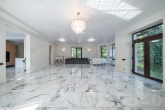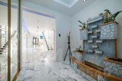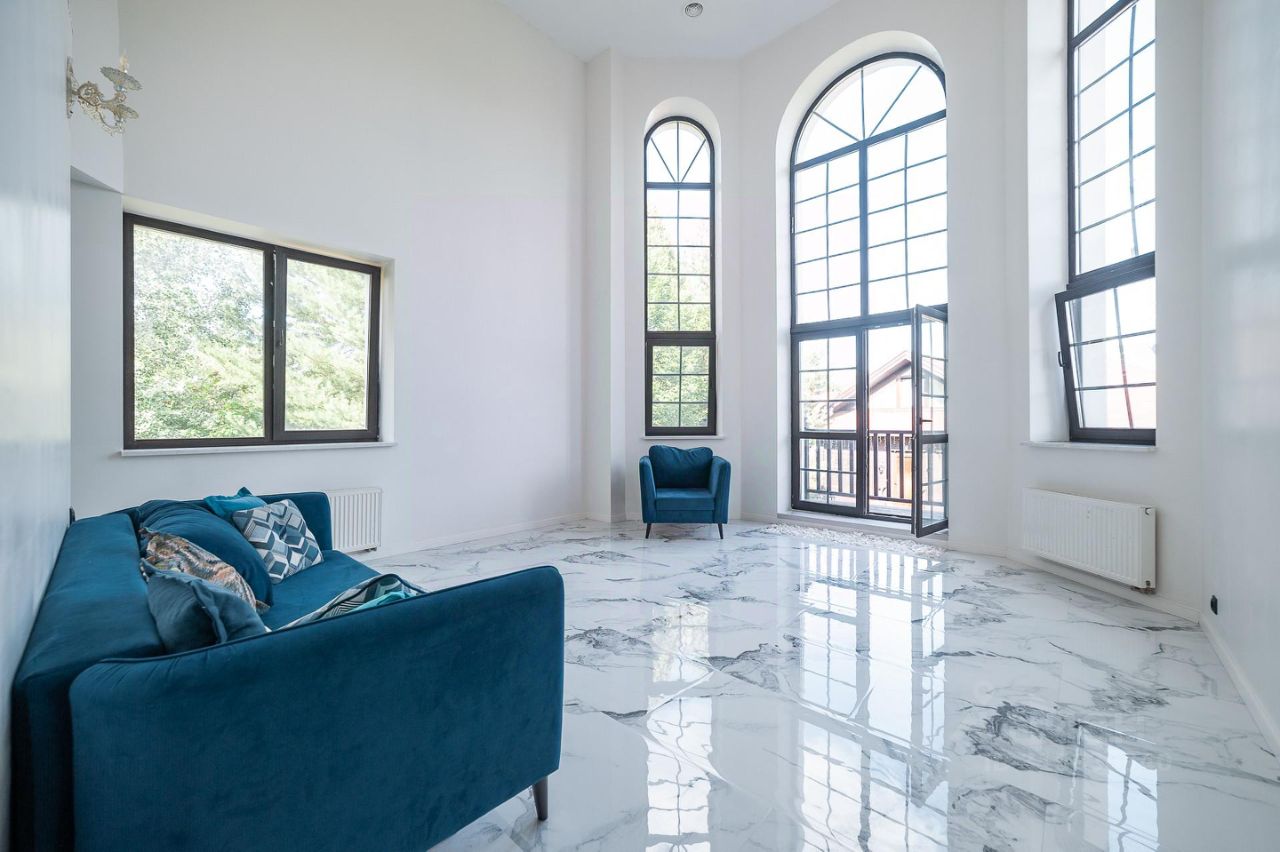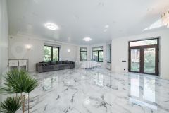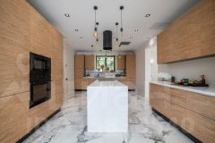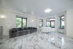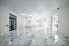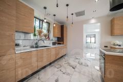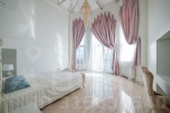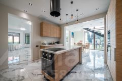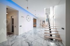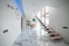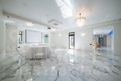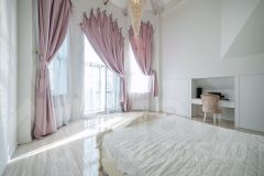 В интерьере использованы премиальные материалы отделки в светлых тонах.