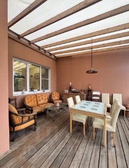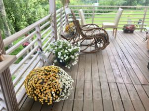На первом этаже из гостиной выход на просторную веранду, окруженную деревьями.