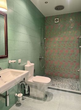 Всего 3 этажа, также есть цокольный этаж,на котором расположена бильярдная комната. 3 спальни, 4 санузла,кабинет.