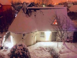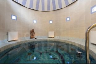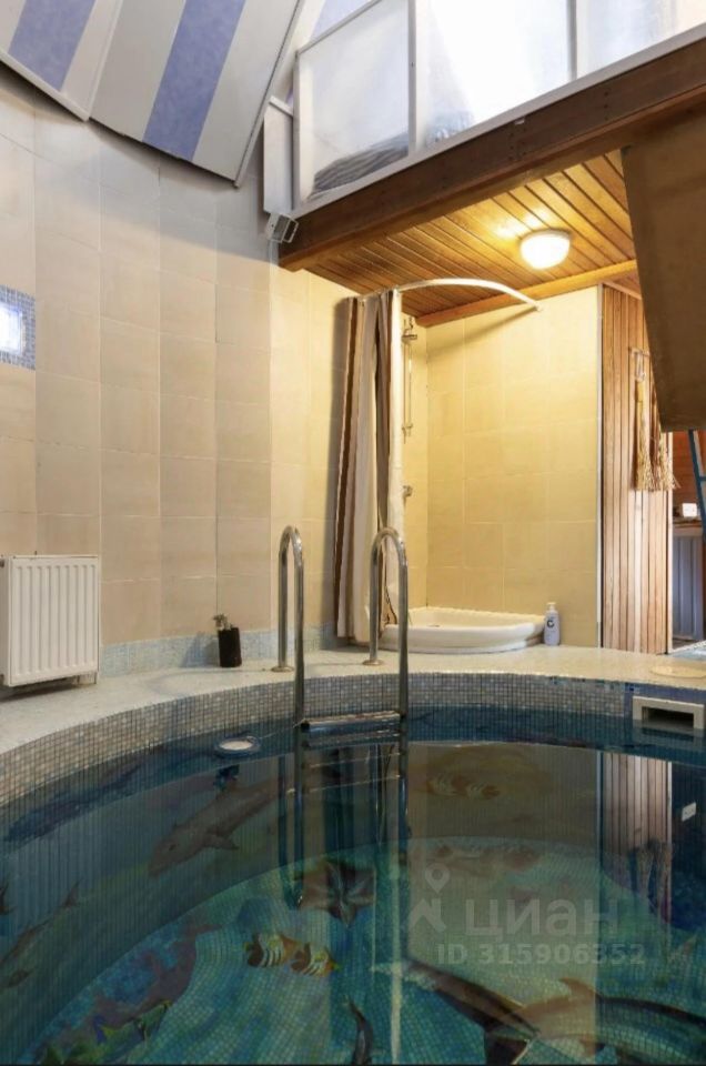 На первом этаже гостиная комната, сауна, бассейн, две душевые, сан узел. На втором этаже спальня с двухспальной кроватью.
