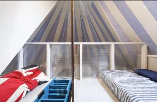 3 этаж - больше подходит для спортивного зала, так же есть двуспальная кровать, потолочный вентилятор, шкаф и несколько мест для хранения вещей.