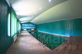 Банный комплекс расположен на первом этаже дома, и занимает 60 кв.м. В нем находится большой бассейн с нежной бежевой плиткой 10х4 метра с LED подсветкой, большая сауна на 6-8 человек, зона отдыха со светлыми диванами, стерео и тематическими sweet — плакатами во всю стену.