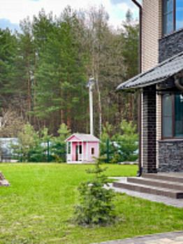 На территории дома расположена зона барбекю , крытая беседка, баня, качели, песочница, детский игровой домик.