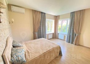 Сдаю новый двухэтажный дом 307 м (8 спальных мест) с дизайнерским ремонтом на благоустроенном земельном участке 21 сот с отдельностоящей баней, зоной барбекю с беседкой, лужайкой, большой теплицей, гаражом и открытой парковкой на 4 авто в 30 минутах от МКАД по Новорижскому шоссе. Уникальная "воздушная" планировка нового дома - просторная гостиная с окном в 2 этажа и вторым светом (высота 7 м) и разнесенные по двум сторонам дома спальни, разделяющие дом на детскую и родительскую части, особенно подходит для семей с 2 и более детьми. Две детские спальни имеют общий проходной санузел.