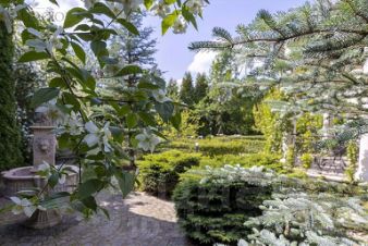 Особняк полностью готов к заселению. В каждой комнате дизайнерская мебель, зеркала, картины, живые цветы и различные стильные предметы интерьера, которые хочется рассматривать. В саду установлена уличная мебель — в хорошую погоду можно пить кофе и любоваться видами.