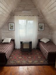 Сдается уютный, деревянный и экологичный летний, дачный домик. Дом находится на участке у собственника, который проживает в большом доме. Благоустроенная территория, в доме есть все необходимое. Вам не нужно беспокоиться о газоне, мы косим его сами. Можно заезжать и жить.