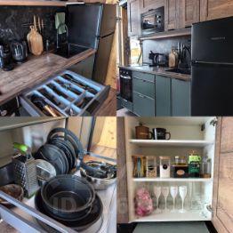 *вся необходимая техника: холодильник, плита, микроволновка, чайник, кофемашина