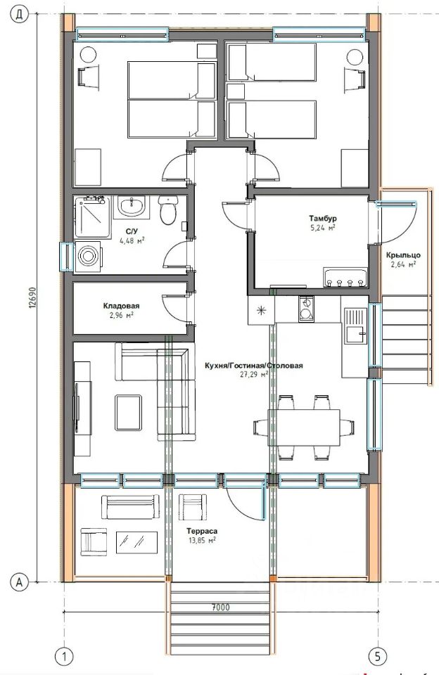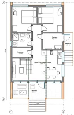 • Просторная кухня-гостиная с панорамными окнами и выходом на террасу.