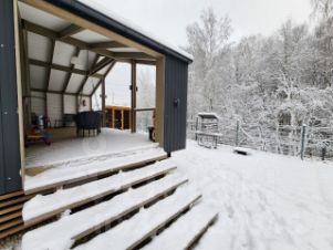 На новогодние праздники в аренду сдается современный деревянный дом с панорамным остеклением. Построен для себя в 2023 году (все новое, без следов использования).
