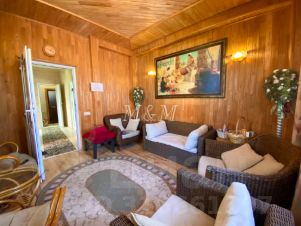 1 этаж: банкетный зал (до 40 гостей), конференцсзал на 40 человек, каминный зал, кухня - столовая (на 15 человек), спальня (двуспальная кровать, санузел, ванна, ТВ), санузел, душ