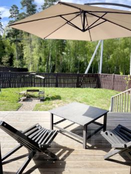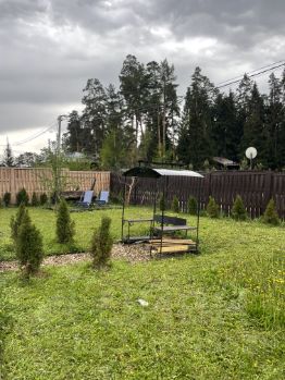 Парковка на 2 автомобиля. Свободный участок вокруг дома. Мангальная зона и зона отдыха с качелями расположены на участке.