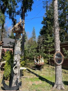 - Мансарда: Три уютные спальни с наклонным потолком, двуспальными кроватями. Окна выходят в лес.