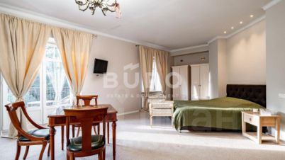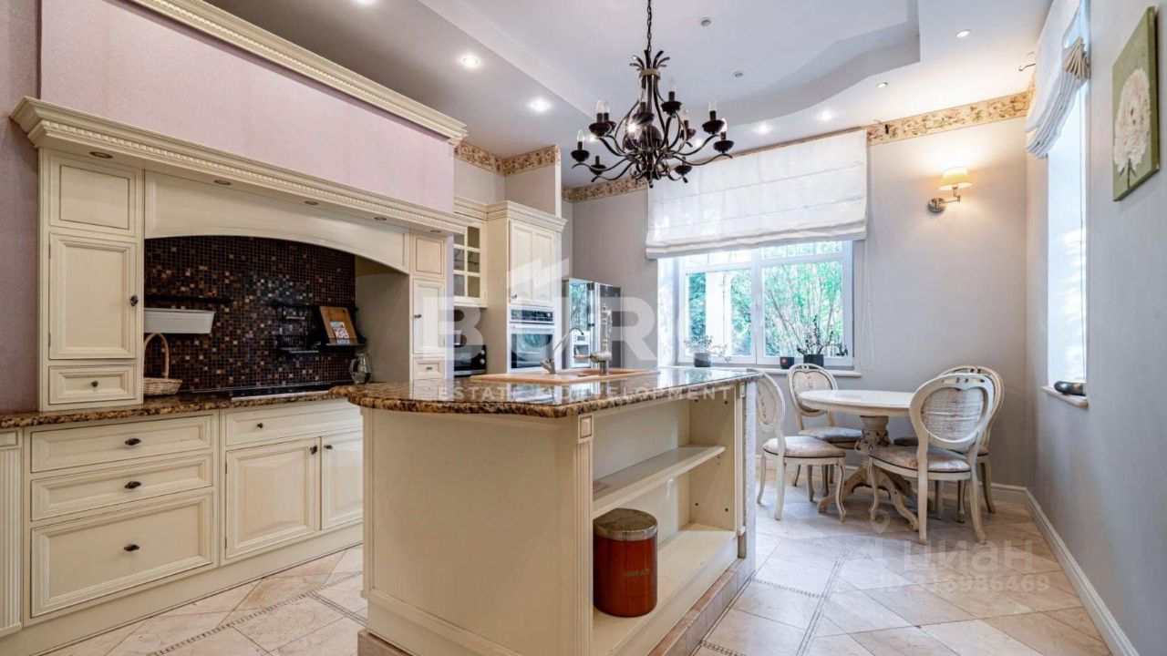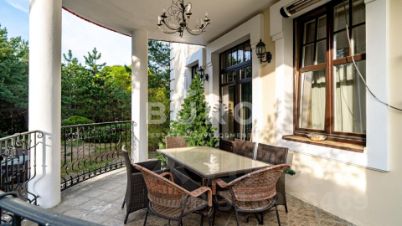 В доме выполнена превосходная отделка с применением высококачественных материалов. Мраморные полы подчеркивают роскошное убранство. Интерьер выдержан в мягкой, пастельной цветовой гамме и укомплектован изысканной итальянской мебелью из ценных пород. Дом отапливается шведской системой отопления "Термотех" (теплый пол). Оптимальный микроклимат в доме поддерживают встроенная система вентиляции и кондиционирования.