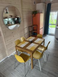 • Для детей: кроватка-манеж, стульчик для кормления, горка для купания (по запросу). Во дворе поселка есть детская площадка.