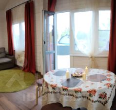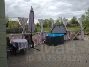 Баня и купель находятся на террасе, выход на которую прямо из дома.