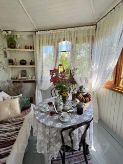 1 Этаж: Большая светлая веранда она же кухня - гостиная. Имеется холодильник с морозилкой, индукционная плитка, чайник, тостер. Кухня оснащена горячей и холодной водой.
