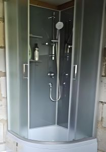 В помещении с отдельным входом с улицы находится душевая кабинка и стиральная машинка, биотуалет.