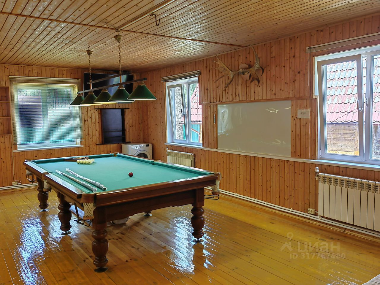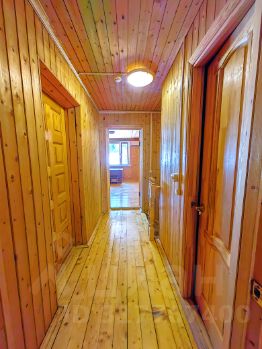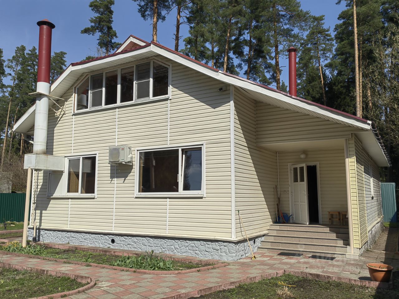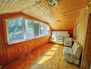Двухэтажный сруб, обшит сайдингом. В доме дышаться легко, нет лишних запахов. Установлены кондиционеры. Строился для круглогодичного проживания, все коммуникации в рабочем состоянии. На участке два места для парковки авто, перед забором еще четыре.