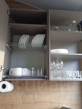 - Кухня-гостиная с раскладывающимся диваном, где дополнительно могут размещаться до 2х человек, кухня укомплектована холодильникоми двухкомфорочной индукционной плитой, микроволновкой, чайником, капсульной кофемашиной, набором посуды на 6 персон, раскладывающийся стол на 6 человек.