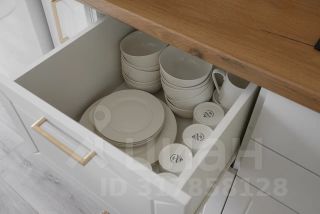 Вся необходимая посуда: кастрюли, сковородки, салатники, тарелки, чашки, бокалы, рюмки, половники.