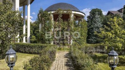 На участке с красивым ландшафтный дизайном построена открытая беседка, увитая плющом. Сделаны дорожки, растут взрослые деревья и аккуратные кустарники. Уличное освещение создаёт романтическую атмосферу в вечернее время. Соседние дома уже построены и заселены.