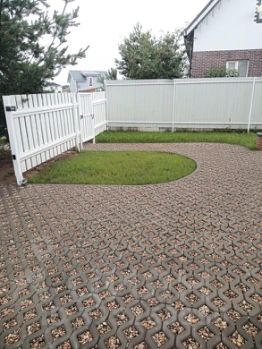Отмостка и парковка на 2 а/м выполнены из железобетона и брусчатки. За счёт широкой обочины можно поставить еще один автомобиль.