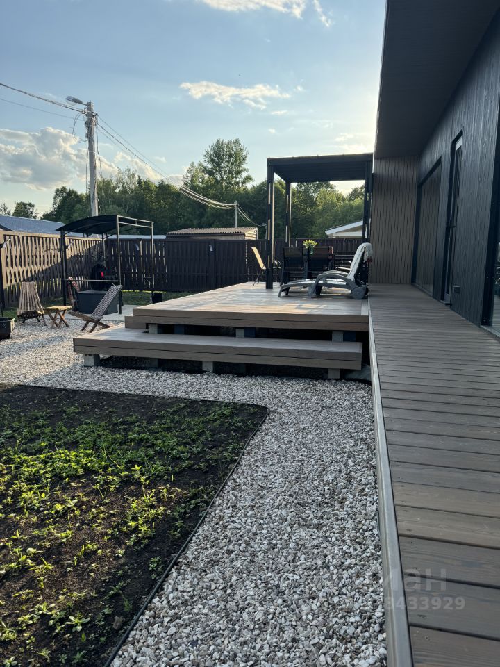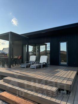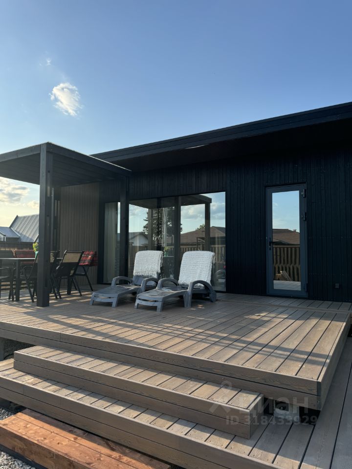 Дом новый, дизайнерский, с сауной и купелью. Стоит на приватном участке (находится на стадии благоустройства) с видеонаблюдением и парковкой на 2 авто.