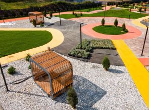 Сбербанка, с благоустроенной прогулочной зоной, обилием зелени и собственной инфраструктурой.