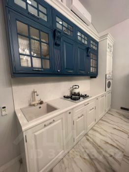 -современная кухня-гостиная со всей необходимой посудой и бытовой техникой (духовой шкаф, холодильник, чайник)