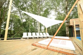 бассейн 612 м (часть под стеклом, с возможностью проплыть на улицу, снаружи крытый)