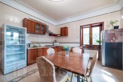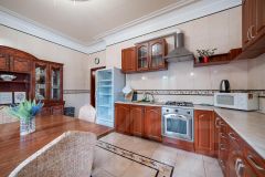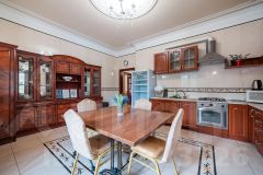 просторная кухня с необходимой бытовой техникой, кухонными приборами и посудой