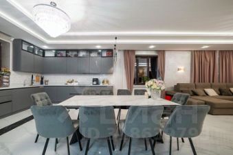 на первом этаже кухня-гостиная площадью 72 м2, для проведения банкетов на 18 персон.