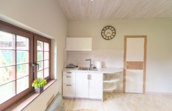 Кухня-гостиная, совмещенный санузел, парилка.