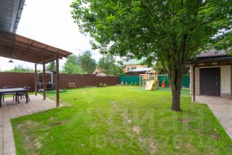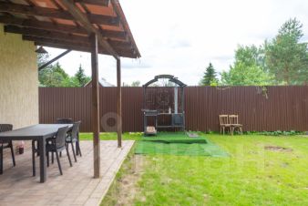 На участке зона барбекю с мангалом, навес на 2 автомобиля, детская площадка.