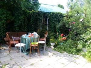 Во дворе стоянка до 4 авто. Хвойные и плодовые деревья, цветы. Большая беседка на 14чел.,с мягкой мебелью, большим столом, мангал. Баня на дровах(парилка , комната отдыха, душ).