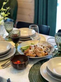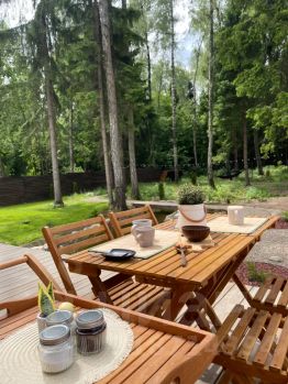 Наш дом идеально подходит для семейного отдыха. Все в нем мы делали сами для себя и своих детей. В доме две изолированные спальни с размещением два гостя в спальне, три ребенка в детской и просторная гостиная с двумя раскладными диванами для размещения 4х гостей. В гостиной панорамные окна с видом на лес и большой камин. Санузел с отдельностоящей ванной и окном, есть и душевая кабина. В гостиной и на террасе два больших обеденных стола, много красивой посуды. На улице круглогодичный сибирский кедровый чан на дровах на 6 человек в вековых елях, летом бассейн. Лобное место с костровой чашей. Во дворе большой мангал. Отрытый бассейн на летний период. В доме есть все для детей: детская комната с игрушками, книжками, мобильный бортик на кровать и прочие необходимости. Также в доме есть: стиральная машина, большой холодильник, варочная электропанель, микроволновая печь, посудомойка, кондиционер, два больших телевизора, колонка, утюг, фен, бойлер для горячей воды.