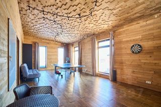 На цокольном этаже: каминный зал с диваном и бильярдом, профессиональный караоке, профессиональная аудиосистема, детская игровая с аэрохоккеем, прачечная, с/у, кладовая.