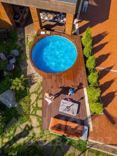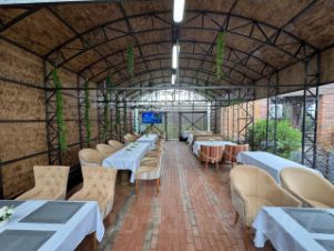 Развлечения: баня на дровах, теннисный стол, бильярд, спортзал, детская площадка, караоке, футбольное поле, баскетбольная площадка.