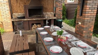Участок 35 соток. Ухоженная зеленая территория, ландшафтный дизайн. Высажены кустарники и цветы, газон. Дорожки облагорожены. Растут хвойные и лиственные деревья. Территория освещается в темное время суток. Лобное место кострище. Отдельно стоящая баня на дровах. Детская площадка со спортивно-игровым оборудованием. Гостевой домик с гостиной, кухней, душем и с/у. Футбольное поле, баскетбольная площадка. Беседка с мангальной зоной. Парковка до 12 авто.