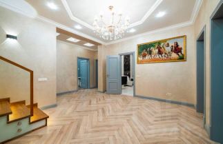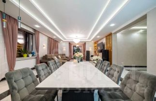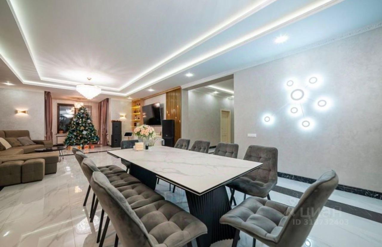 На первом этаже современного трехэтажного дома расположена огромная кухня-гостиная площадью 72 м2. В гостиной можно проводить банкеты до 25 персон. Всего в доме 11 изолированных спален и 6 с/у. В коттедже суммарно 11 двуспальных кроватей и 4 раскладных дивана.