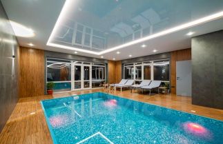 На территории общей площадью 15 соток расположен отдельностоящий СПА комплекс, в котором расположены баня на дровах, большой теплый бассейн и обливное ведро рядом с парилкой. Размеры бассейна 11*3,5, температура воды 27`, глубина варьируется от 0,7 до 1,6м. Парковка на территории рассчитана на 6 машиномест.