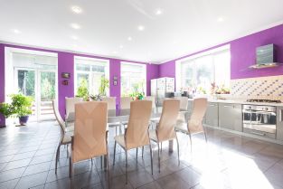 -кухня-столовая, оборудованная бытовой техникой (посудомойка, духовка, плита, свч, кофемашина, холодильник, морозильная камера)