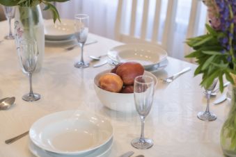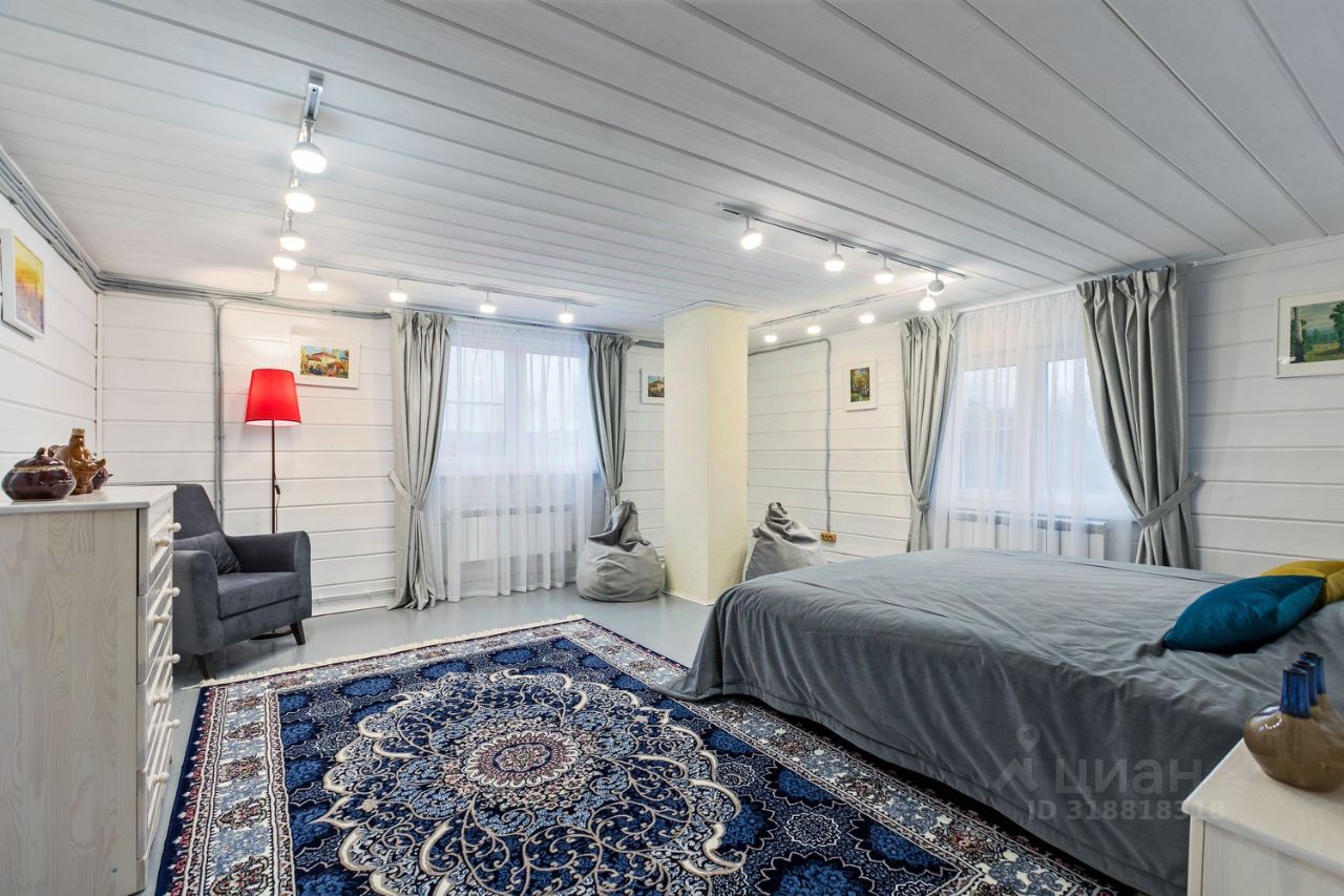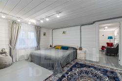 на 2 этаже просторная спальня с кроватью 2х2 м, в холле двуспальный диван и ещё одна гостиная с двуспальным диваном