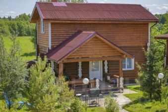 Двухэтажный гостевой дом "Суздаль" площадью 120 м2 расположен в гостевом комплексе. Дом из кедрового сруба с русской печкой и лежанкой.