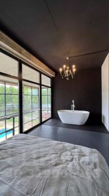 В доме 6 спален, в том числе мастер-спальня с ванной и панорамным видом на лесную чащу и бассейн, 9 мини спален, покерная игровая комната, сауна на каменной финской печи, а также профессиональное музыкальное оборудование с качественным звуком и простым подключением.
